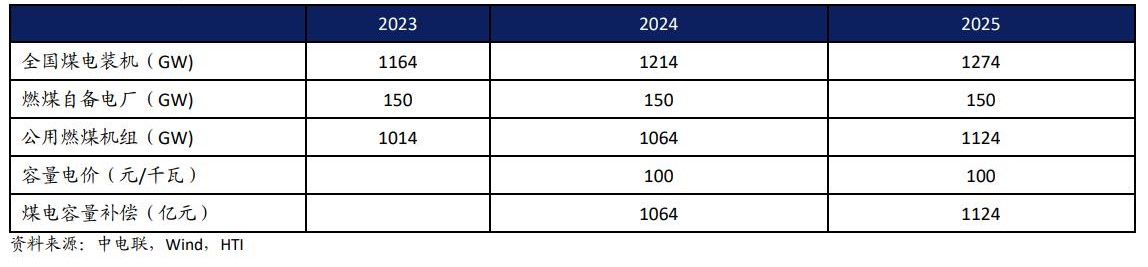 容量电价市场空间测算(资料来源:中电联、Wind、HTI)