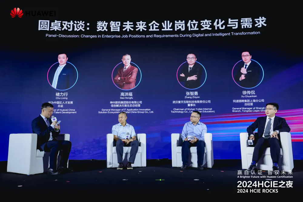 洞察先机,见微知著。当下企业岗位的变化与人才需求,是每一位HCIE共同关注的焦点,也是个人职业发展和终身学习的风向标。神州数码信创解决方案生态总经理高洪福、武汉誉天互联科技董事长张智勇、同道猎聘上海分公司总经理徐传侃等业界领袖就“数智未来企业岗位变化与需求”的主题进行了对话。他们认为,数字经济和AI等赛道足够宽足够长,与AI相关岗位招聘需求和技能认证需求都在快速增长,企业应建立相应的人力资源体系和评价标准。