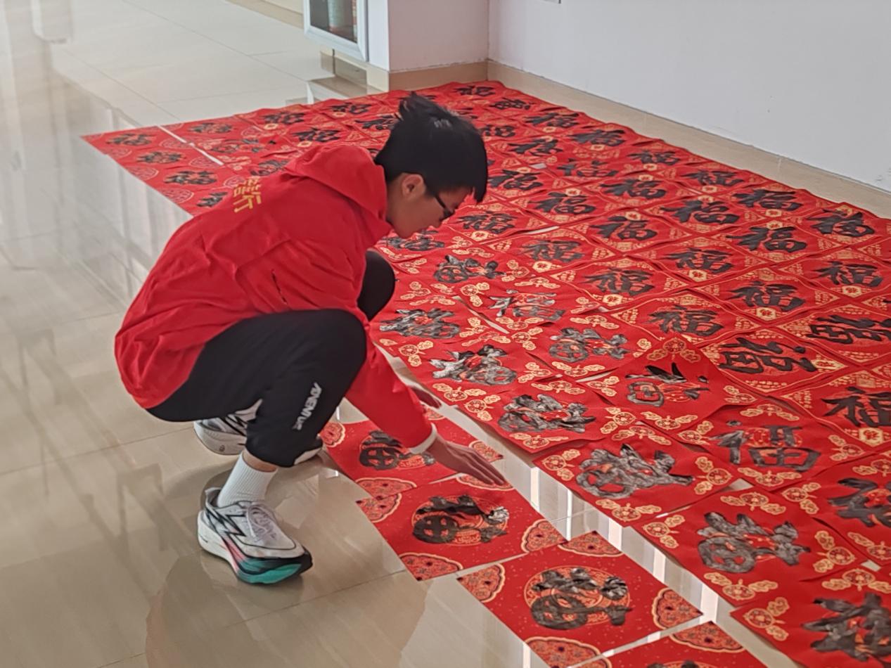 “无联不成春,有联春更浓”,志愿者们也有序将书法家写好的一幅幅饱含着年味,充满祝福寓意的春联摆放在大厅等待墨汁晾干,浓的年味在安徽省城乡规划建设大厦三楼大厅里的每个角落弥漫开来。