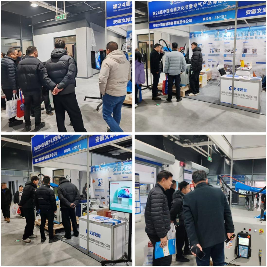 在博览会现场,安徽文泽智能装备有限责任公司展位上,由文泽智能自主研发的激光焊接机器人吸引了众多参观者的目光。参观者们纷纷驻足观看,详细了解激光焊接机器人的性能和应用场景,文泽智能的工作人员也耐心地为参观者解答疑问。