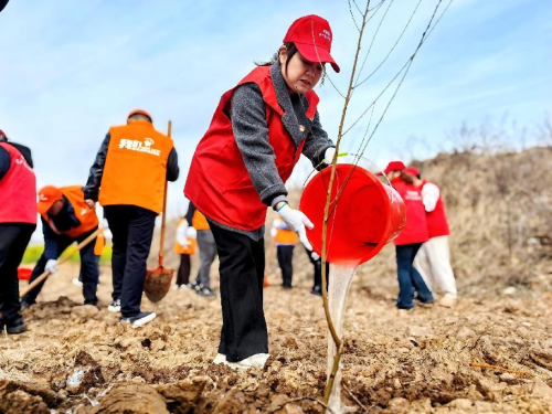暖风习习,春日和煦。在植树现场,工作人员为青年志愿者们讲解种植注意事项,在了解植树的各项“技术要领”后,大家领取树苗,挖坑、栽树、培土、踩实、浇灌,热情高涨、干劲十足、配合默契,认真地栽种好每一棵树苗。