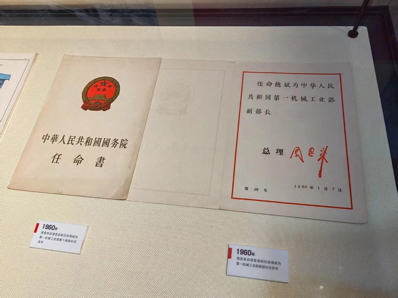 周恩来总理签发的任命饶斌为第一机械工业部副部长任命书