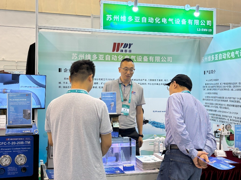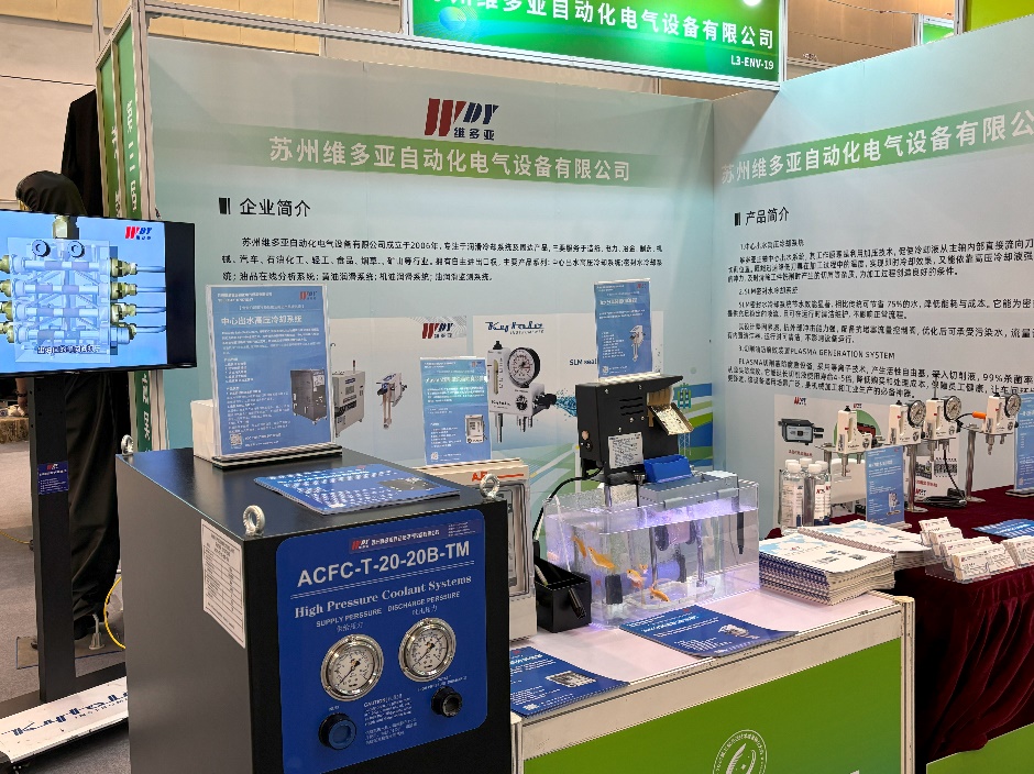 在苏州维多亚的展位上,一系列符合军工品质标准的创新产品吸引了众多参观者的目光。中心出水高压冷却系统,以其精准的控制能力和高效的冷却效果,成为精密机械加工领域的明星产品;SLM密封水冷却装置,凭借卓越的散热性能和稳定的密封结构,为工业设备的稳定运行提供了坚实保障;一体化压铸铝阀,以其轻量化、高强度的特点,不仅降低了能耗,还提高了设备的整体可靠性和使用寿命;plasma切削液杀菌除臭装置,运用先进的等离子技术,实现了切削液的循环利用,既环保又经济;油水分离装置(撇油器)和涡旋过滤系统,则在工业废水处理和液体纯净度保障方面展现出卓越性能,广泛应用于多个行业领域。