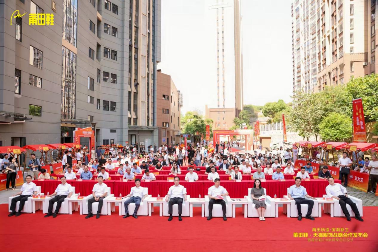 5月15日,由莆田市工信局、莆田市商务局、莆田市工商联、城厢区人民政府、莆田国资集团、天猫服饰、莆田市诚信促进会、莆田市鞋业协会联合主办的“莆田质造·国潮新生”莆田鞋·天猫服饰战略合作发布会暨莆田鞋618消费季启动仪式在莆田鞋运营中心隆重举行。