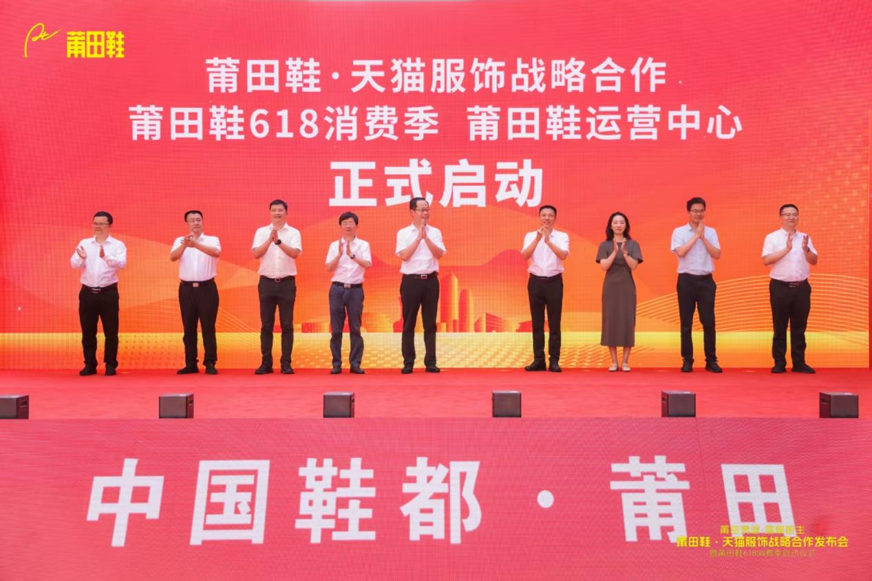 市委常委、统战部部长黄珍耀、莆田市政府副市长郭国成、市政协副主席张志宏、天猫鞋靴总经理芯北等嘉宾共同启动“莆田鞋·天猫服饰战略合作”“618消费季”,并宣布莆田鞋运营中心正式启用。