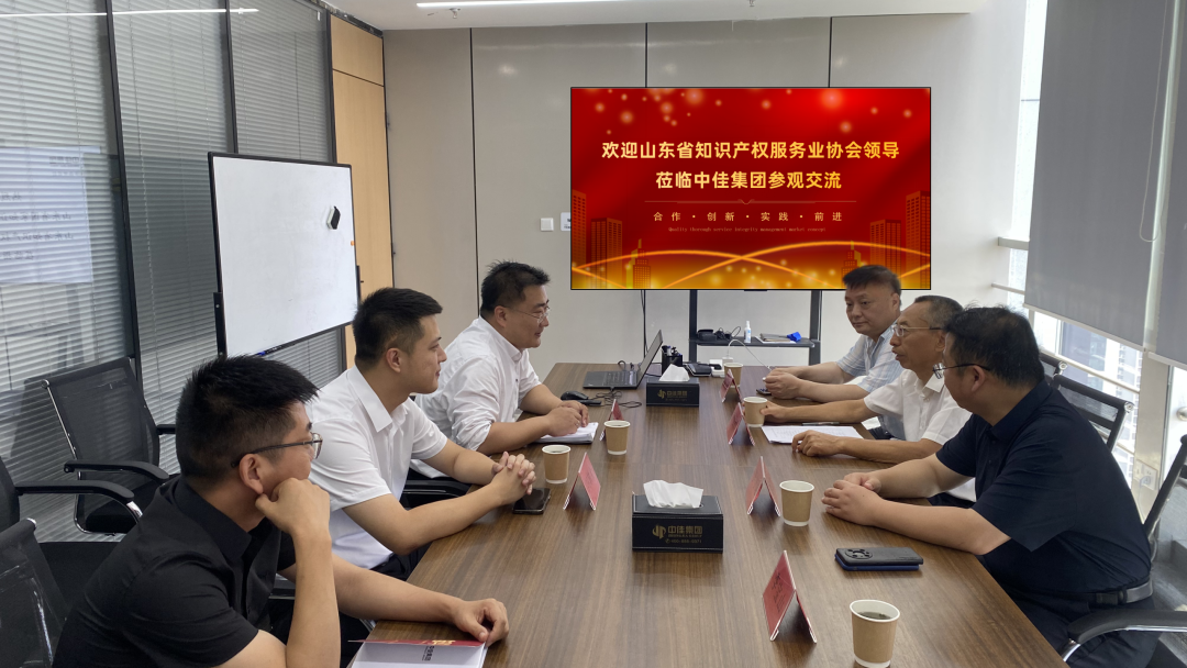 2025年6月18日,山东省知识产权服务业协会会长李守运、副会长肖夙、秘书处李宝山及特邀知识产权专家一行,莅临济南中佳知识产权服务有限公司(中佳集团)指导交流。中佳集团济南分公司负责人冯轶全、高价值事业部负责人韩方森及管理团队接待并作工作汇报。