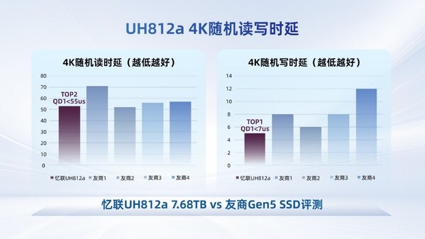近日,忆联新一代PCIe5.0企业级SSDUH812a成功通过英特尔数据中心与人工智能事业部(DCAI)中国区关键组件验证计划的性能基准测试,成为首家通过该验证的国产存储厂商。测试结果显示,UH812a在关键性能指标上显著领先于同代际主流竞品,其卓越的性能与稳定性充分释放了PCIeGen5高速总线及平台内存带宽潜力,同时有力印证了忆联与英特尔在数据中心存储领域的深度合作成果。