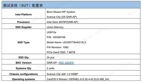 以下是本次忆联UH812a在IntelBirchStream平台上进行性能测试的相关配置详情。