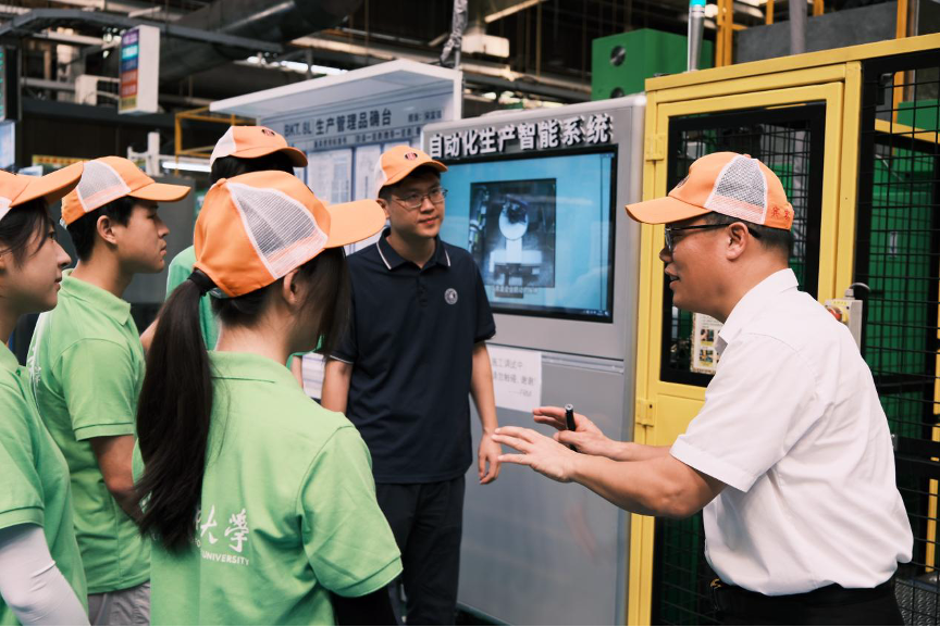 图为实践队聆听自动化生产智能系统讲解